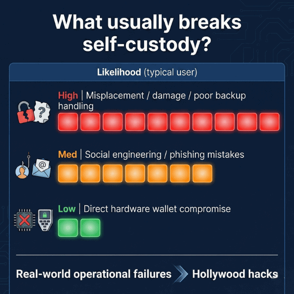 The Part Nobody Practices Buying a hardware wallet feels like leveling up. You go from “exchange user” to “self-custody adult.” And for online attacks, that’s a real upgrade: a hardware wallet keeps your private keys off your laptop/phone, so malware can’t simply copy-paste them away. But here’s